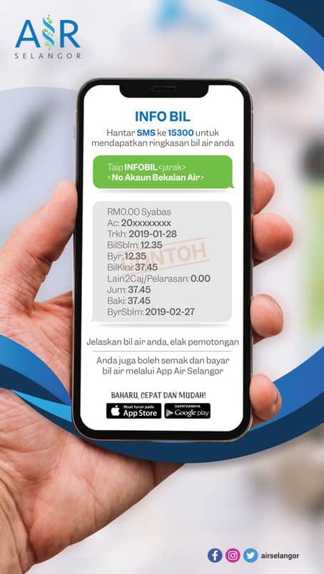 Air Selangor Dapatkan Ringkasan Bil Air Anda Hantar Sms Ke 15300 Taip Infobil Jarak No Akaun Bil Air Jelaskan Bil Air Elak Pemotongan Airselangor Facebook