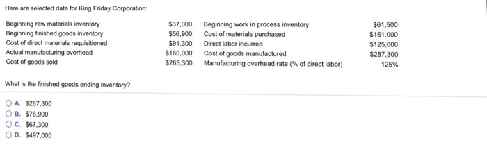Solved Here Are Selected Data For King Friday Corporation Chegg Com